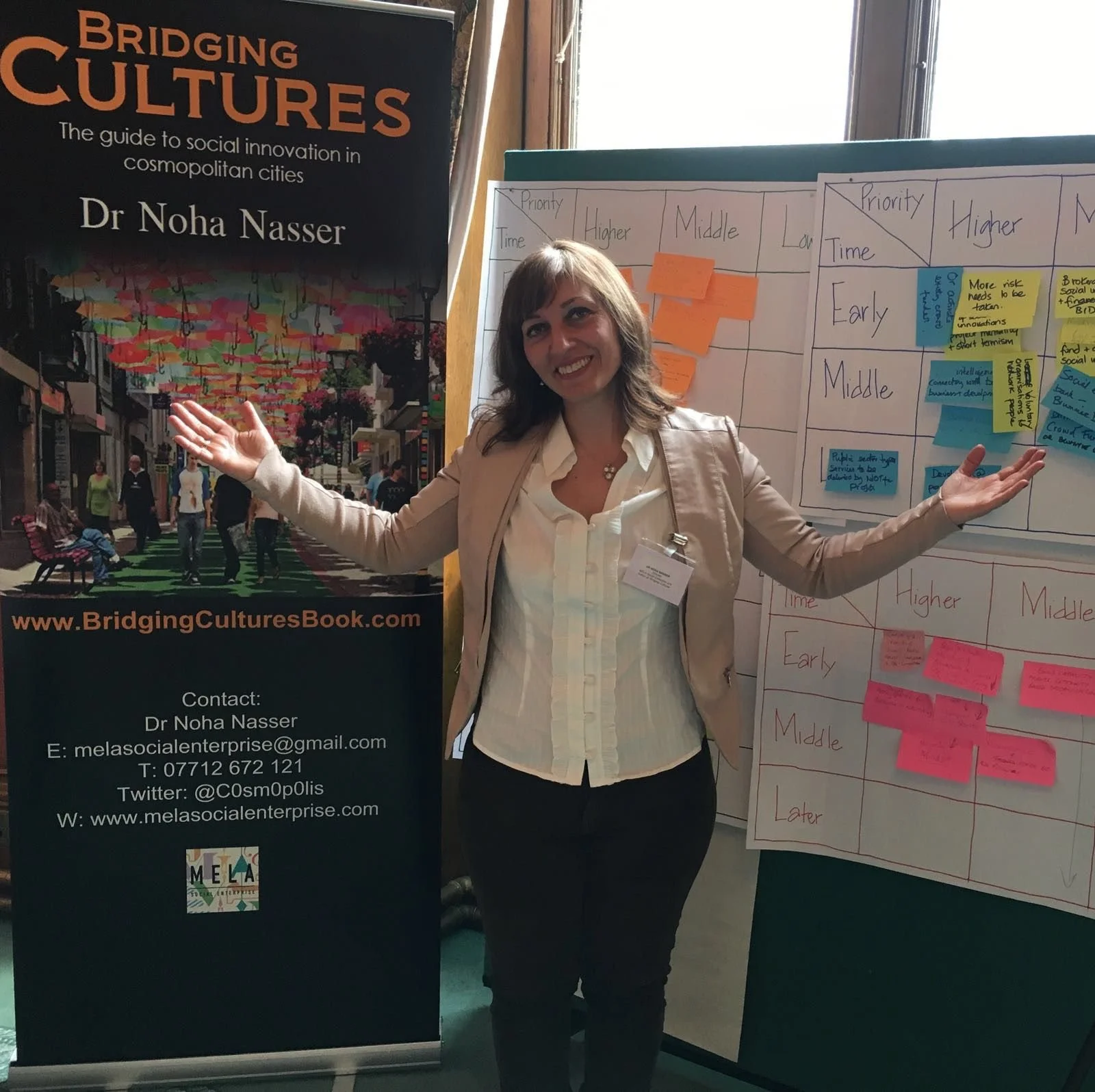 Dr. Noha Nasser celebrates the launch of Bridging Cultures — a visionary guide to social innovation in cosmopolitan cities based on her book and international roundtable discussions with City Councils, social entrepreneurs, and local communities.