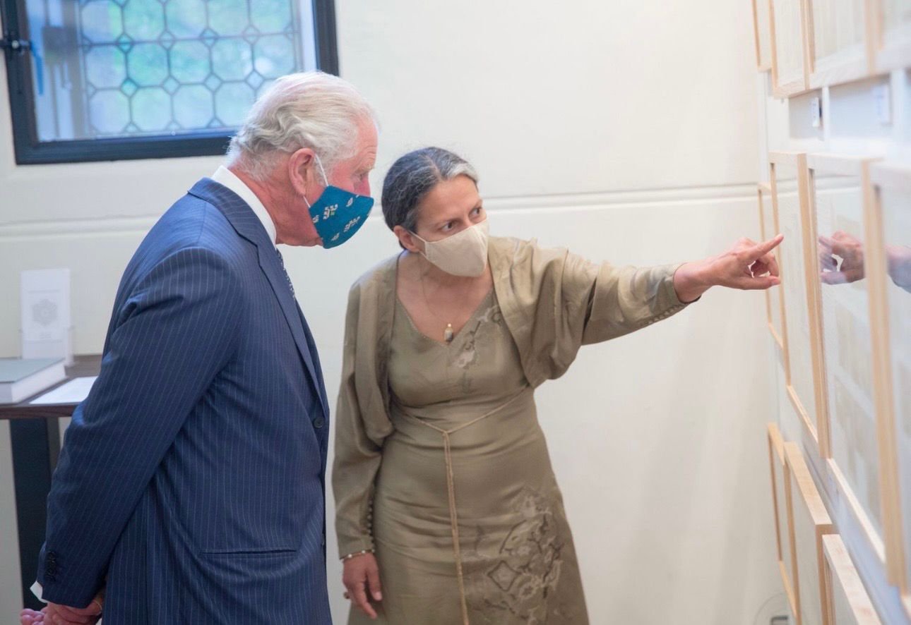 Dr. Nevine presents her PhD in Sacred Architecture while she engages in a meaningful discussion with King Charles III, highlighting shared values of sustainability, heritage, and cultural preservation. King Charles III is the patron of the Kings Foundation of Traditional Arts in London where Dr Nevine gained her PhD.